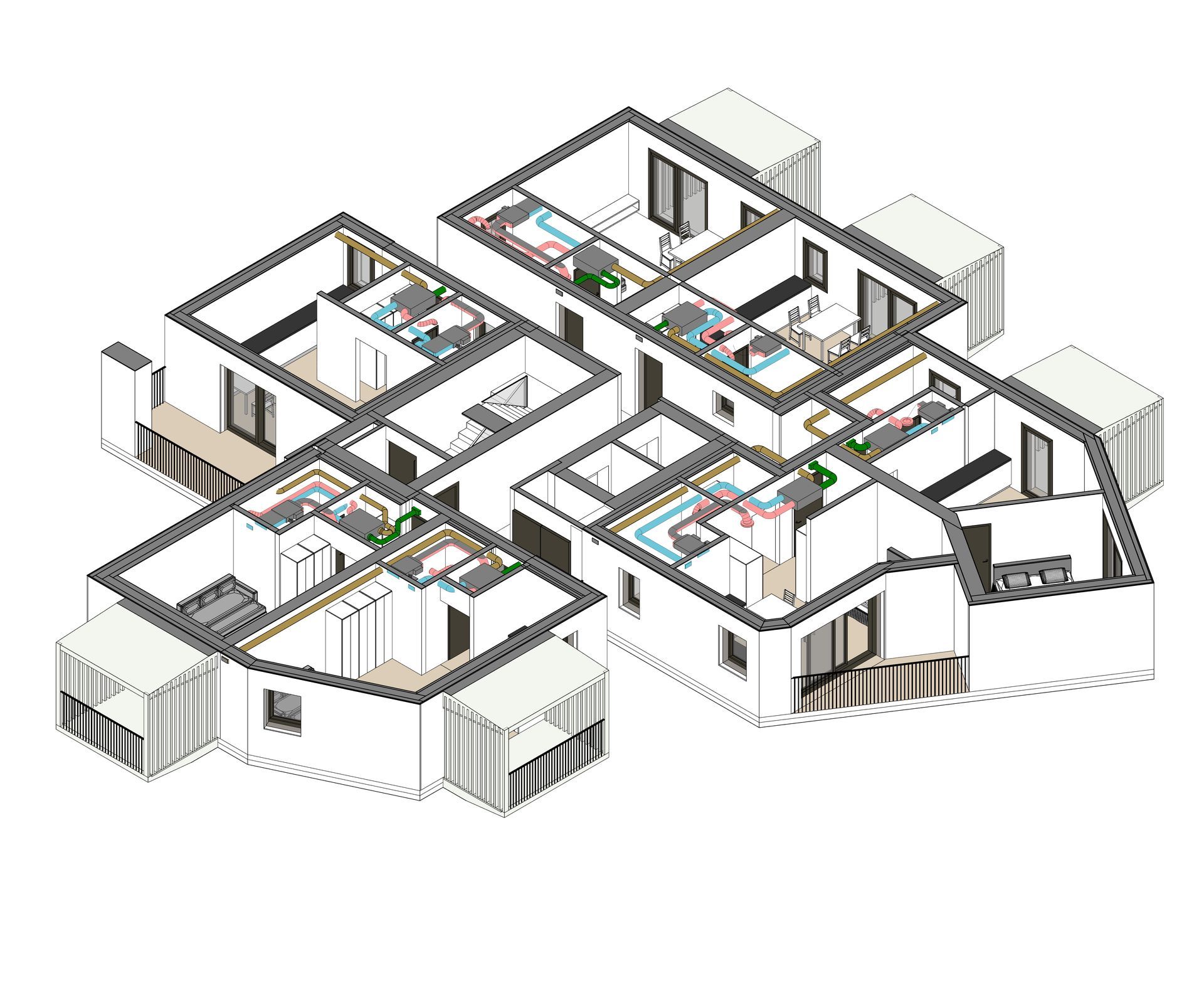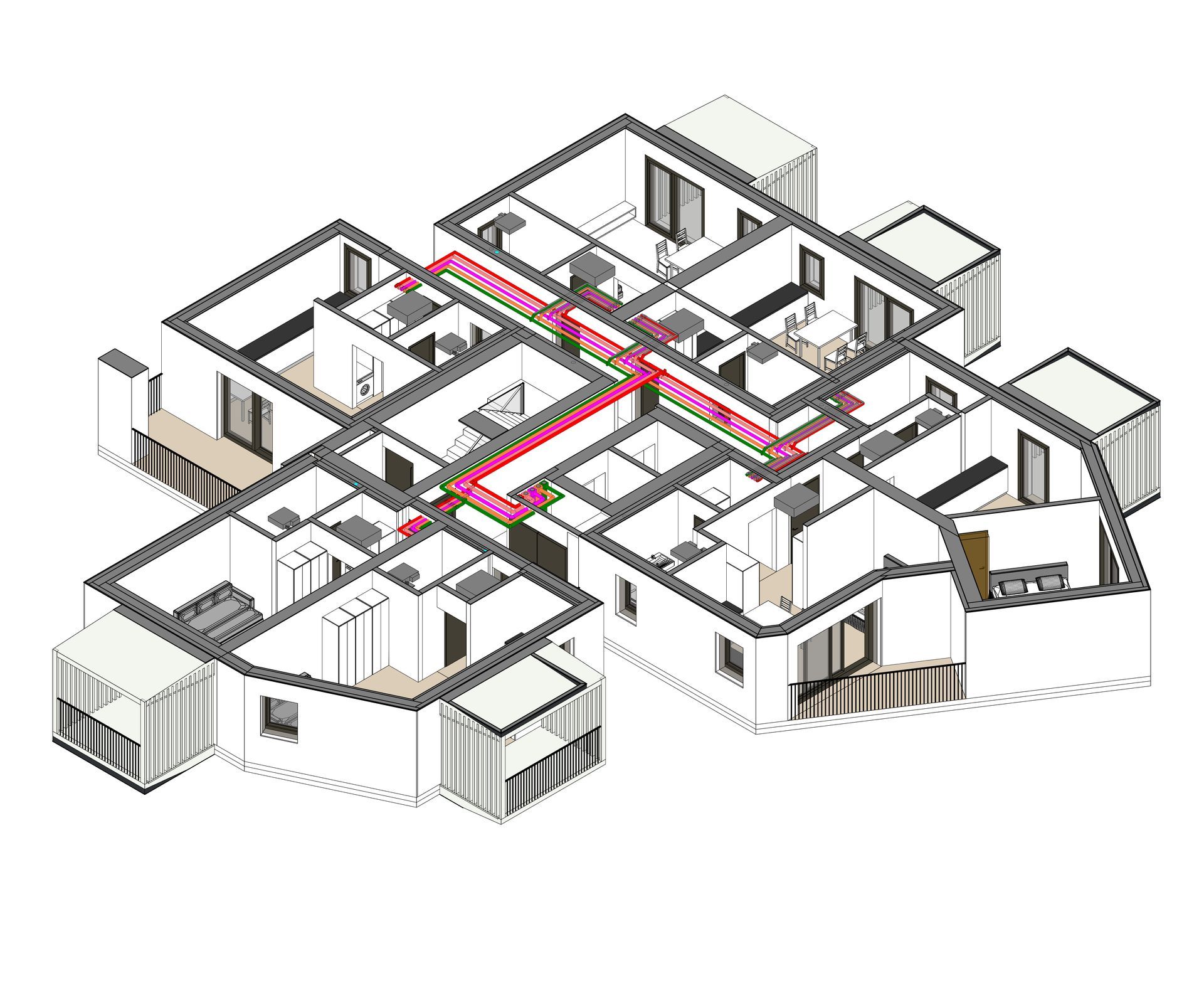 Progetto impiantistico del nuovo complesso residenziale in Corso degli Inglesi 106 a Sanremo, composto da 11 piani fuori terra per un totale di 42 unità abitative e 5 piani interrati destinati ad autorimesse e locali tecnici. L’intervento ha previsto la progettazione integrata degli impianti di climatizzazione, ventilazione e idrico sanitari, sviluppata interamente in ambiente BIM, garantendo un’elevata precisione nella modellazione, nonostante si trattasse di una fase preliminare.