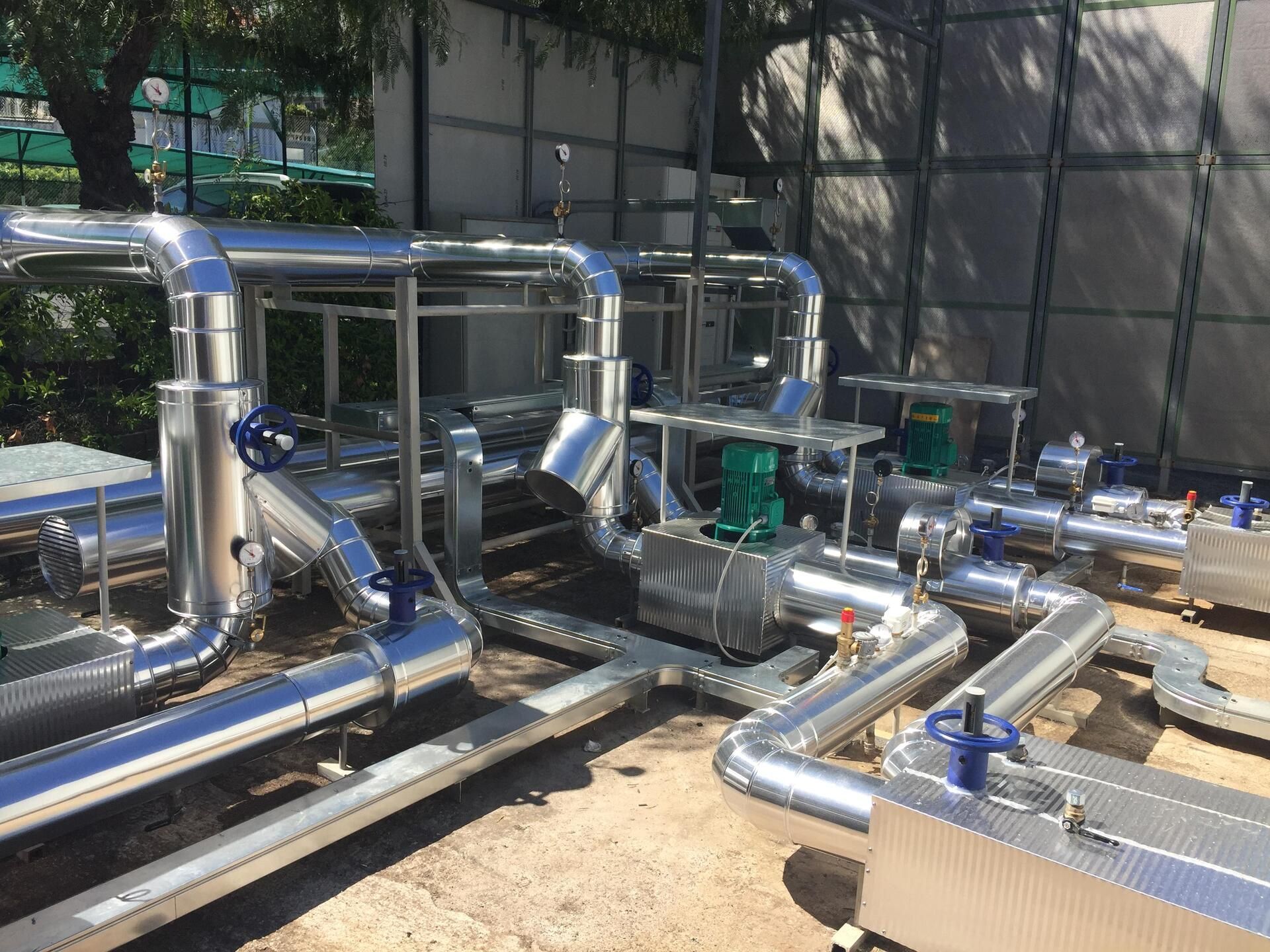 L’intervento ha avuto per oggetto il totale rifacimento della centrale frigorifera con la sostituzione di n° 3 gruppi per una potenza totale di 860 kW e la sostituzione dell’intero sistema di pompaggio.